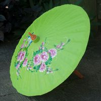 Hand-painted Cotton and Bamboo Parasol 'Blossoming Lanna in Lime' Item ID: 2671803195