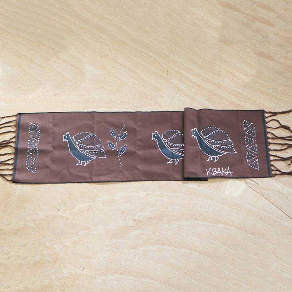 Hand-Painted Cotton Peacock Table Runner from Ghana 'Peacock Procession' Item ID: 2671805695