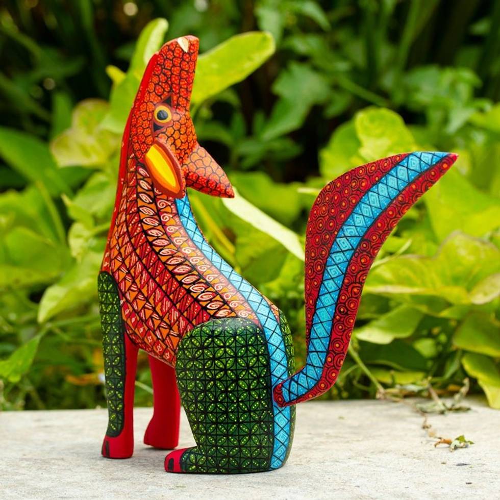 Hand-Painted Coyote-Themed Wooden Alebrije Sculpture 'Cool Coyote' Item ID: 2671639199