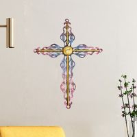 Hand-Painted Crackled Openwork Blue Steel Cross Wall Art 'Splendid Cross' Item ID: 2671807556