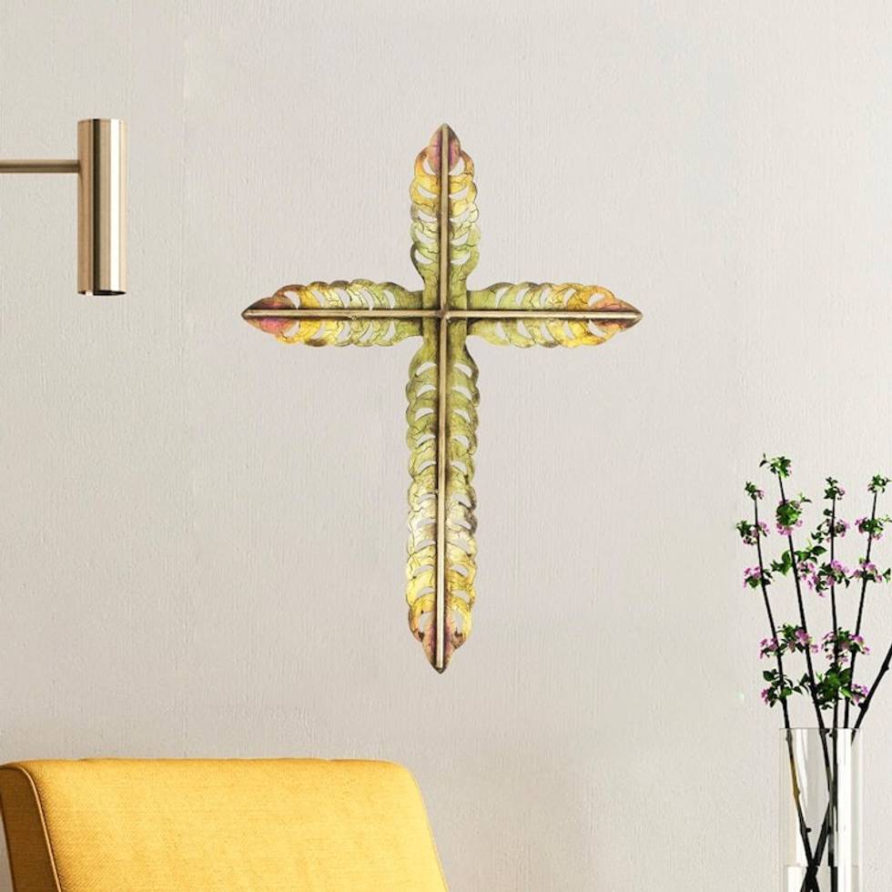 Hand-Painted Crackled Openwork Green Steel Cross Wall Art 'Vibrant Cross' Item ID: 2671807449