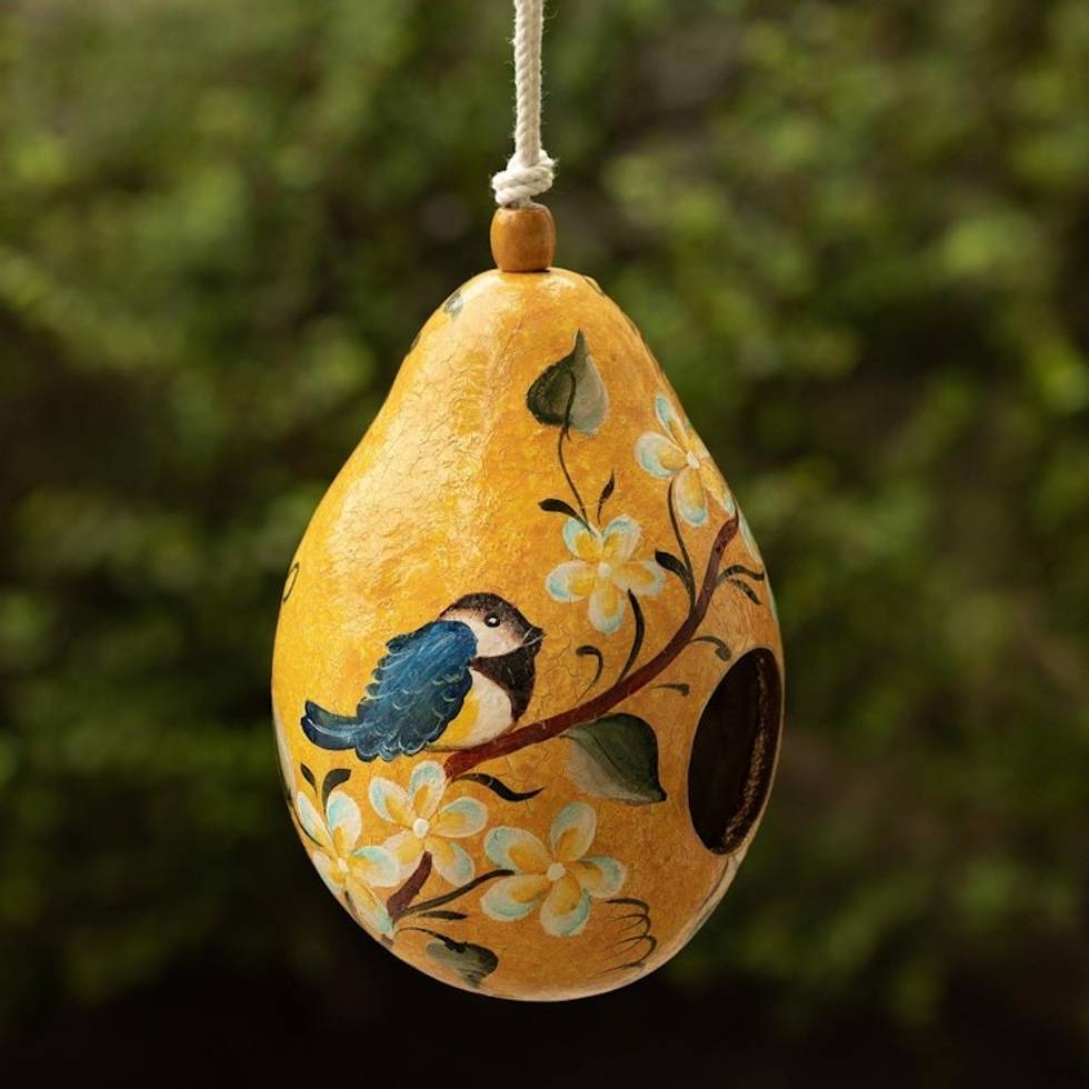 I placed this in a small tree and much interest on part of birds. a chick-a -dee couple decided to settle in! If it remained without a nesting couple, the gourd itself is delightful. A nice splash of color in the yard! Painting is lovely.