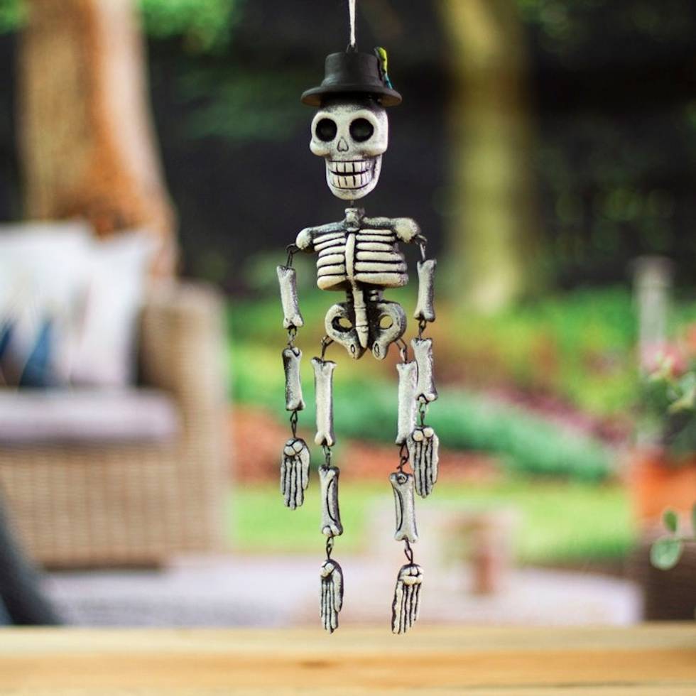 Hand-Painted Day of the Dead Skeleton Ceramic Wall Art 'Dancing Catrin' Item ID: 2671807715