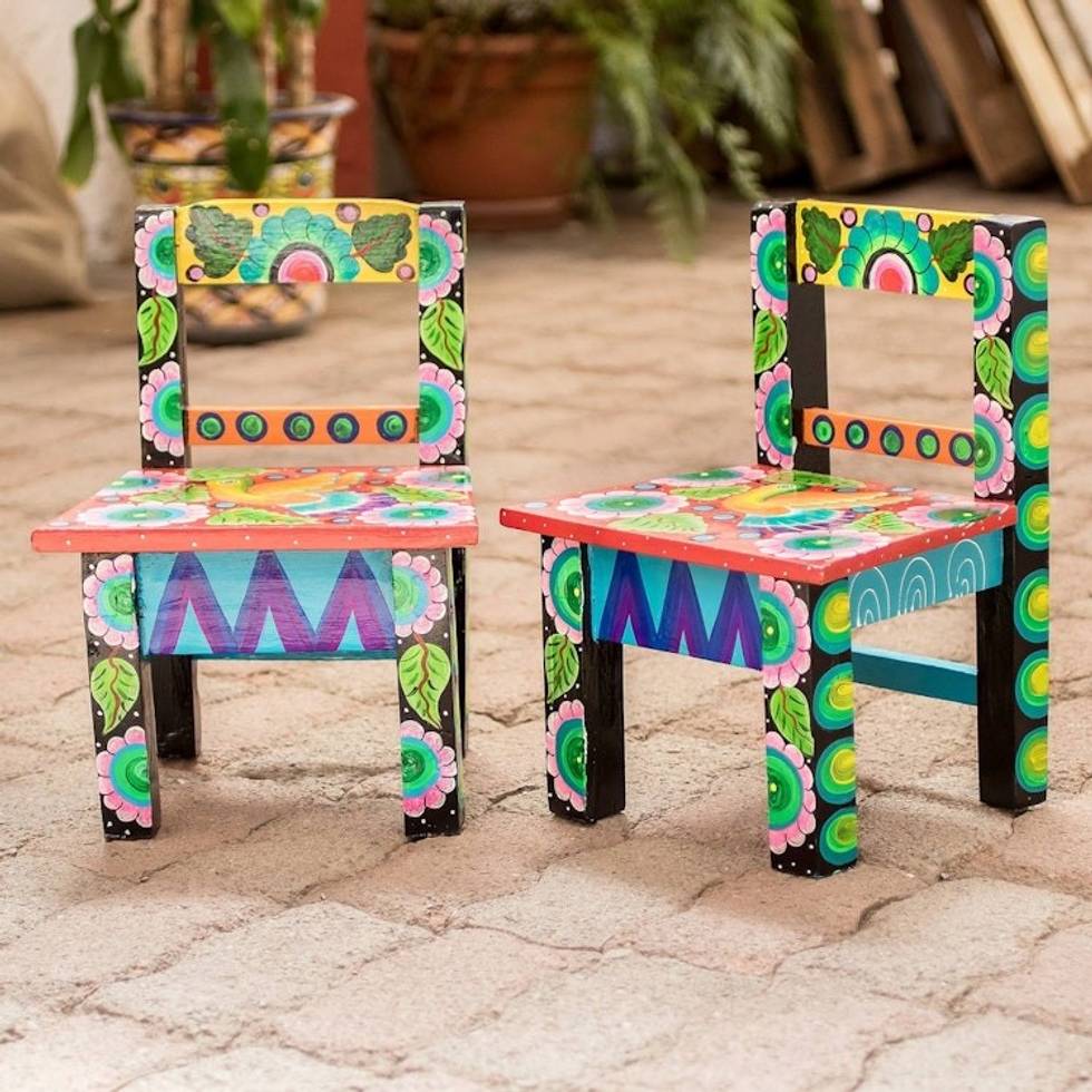 Hand-Painted Decorative Mini Stools from Guatemala 'Free Orange Bird' Item ID: 2671771705