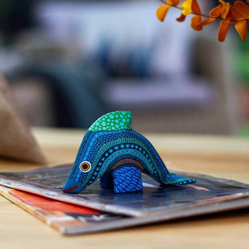 Hand Painted Dolphin Alebrije 'Ocean Dolphin' Item ID: 2676647245