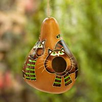 Hand-Painted Dried Gourd Birdhouse with Cat Motif from Peru 'Cute Cats' Item ID: 2671400526