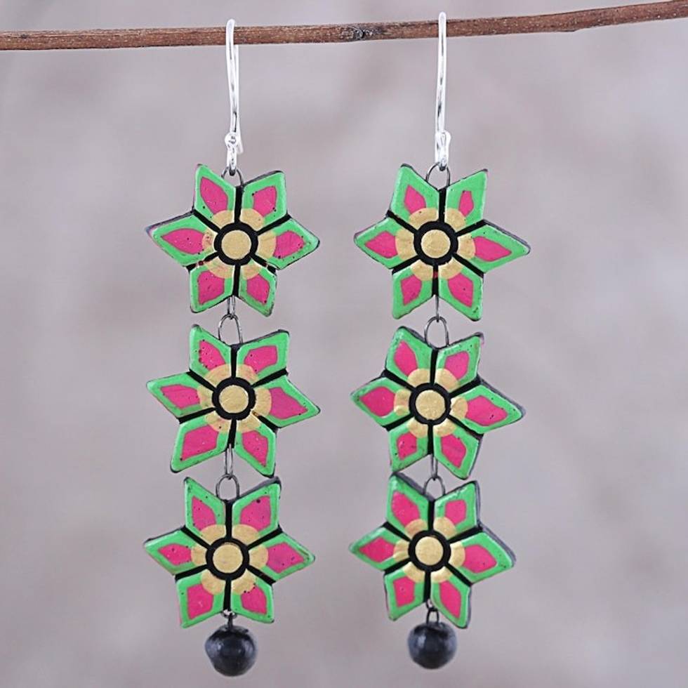 Hand-Painted Floral Ceramic Dangle Earrings from India 'Dazzling Daffodils' Item ID: 2671792042