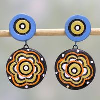 Hand-Painted Floral Ceramic Dangle Earrings from India 'Floral Eyes' Item ID: 2671791059