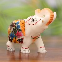 Hand-Painted Floral Soapstone Elephant Figurine from India 'Good Fortune' Item ID: 2671624483