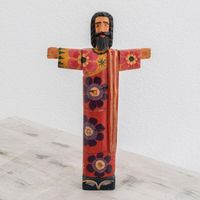 Hand-Painted Floral Wood Jesus Statuette from Guatemala 'Jesus Revived' Item ID: 2671626689