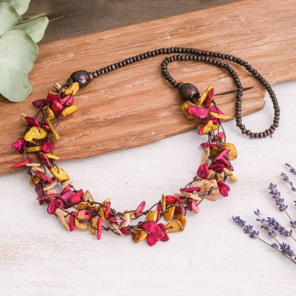 Hand-Painted Fuchsia and Yellow Beaded Three-Strand Necklace 'Fragments of Sweetness' Item ID: 2671796566