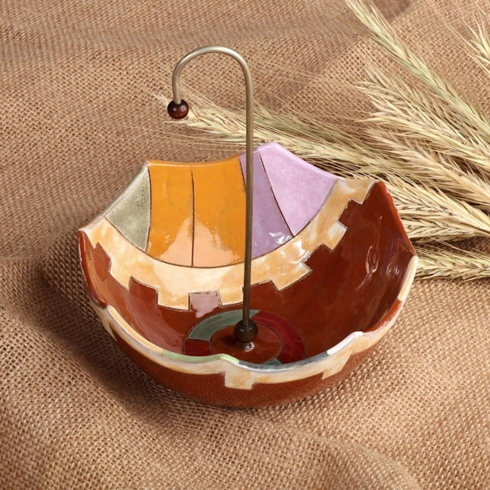 Hand-Painted Glazed Ceramic Umbrella Jewelry Stand Catchall 'Upside Down Umbrella' Item ID: 2669941643