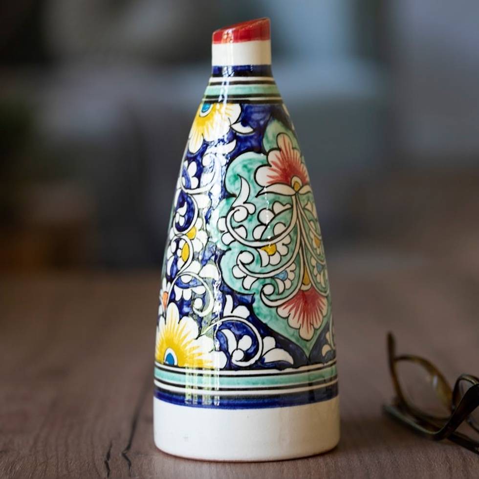 Hand-Painted Glazed Ceramic Vase with Floral and Leaf Motif 'Uzbek Spring' Item ID: 2669935329