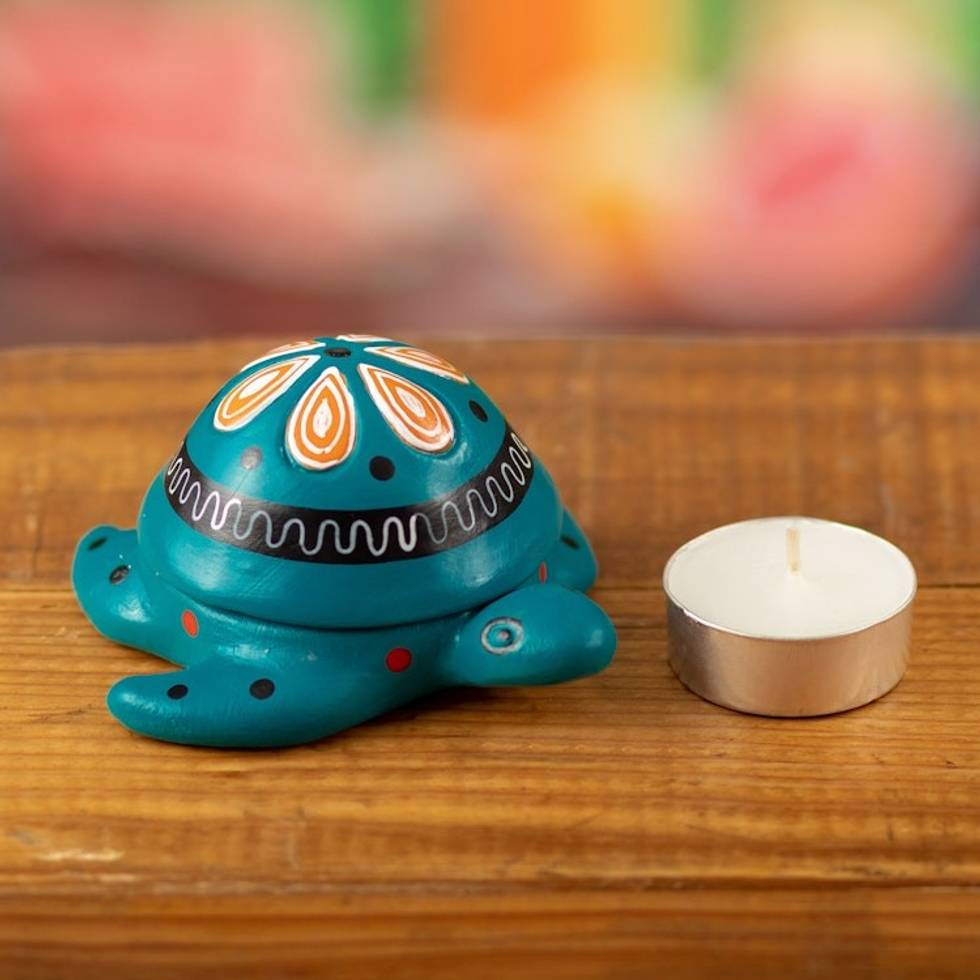 Hand-Painted Green Ceramic Turtle Tealight Candleholder 'Luminous Carapace' Item ID: 2671819499