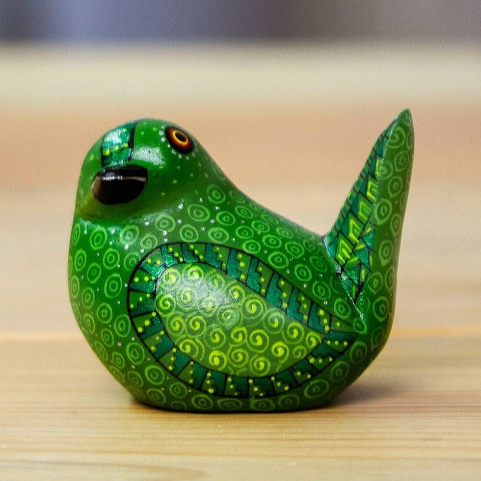 Hand-Painted Green Copal Wood Mockingbird Alebrije Figurine 'Mockingbird of Luck' Item ID: 2671798707