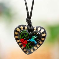 Hand Painted Heart Shaped Hummingbird Pendant Necklace 'Golden Night Hummingbird' Item ID: 2669927057