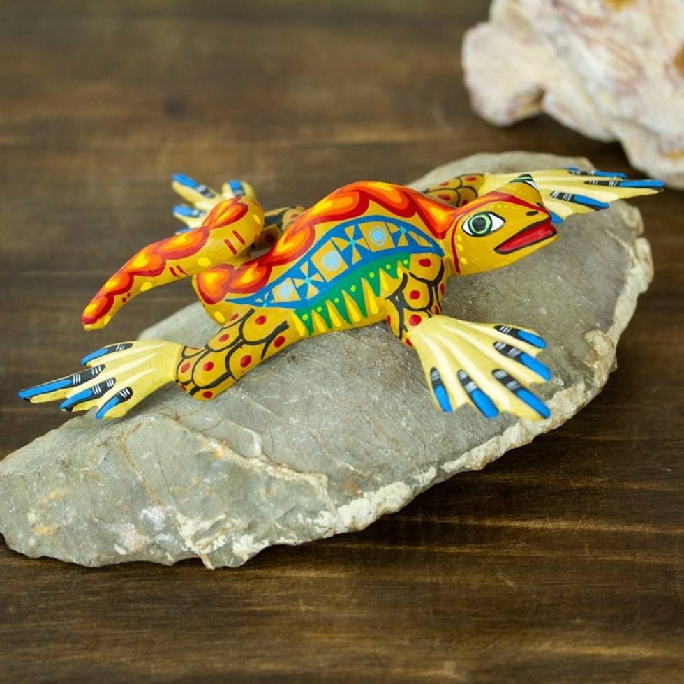 Hand-Painted Honey Copal Wood Alebrije Iguana Figurine 'Iguana Steps in Honey' Item ID: 2669931649
