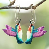 Hand-Painted Hummingbird Dangle Earrings in Teal and Purple 'Magical Feathers' Item ID: 2676661277