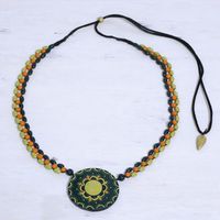 Hand Painted Indian Ceramic Beaded Necklace in Green 'Bright Essence' Item ID: 2671791063