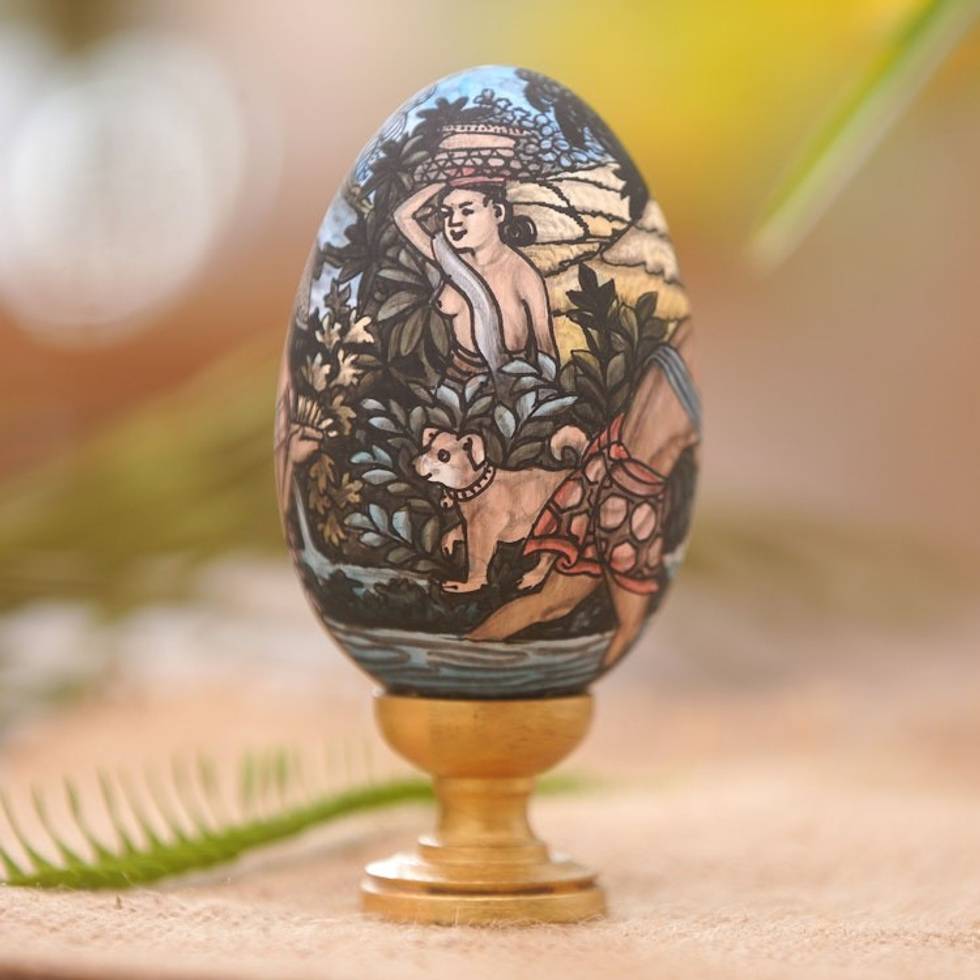 Hand-Painted Indonesian Wood Egg Sculpture 'Juru Pencar' Item ID: 2671747909