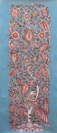 Hand Painted Kalamkari Artwork of Tree with Peacock 'Pink Breeze' Item ID: 2676665035