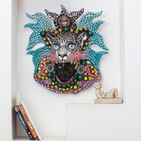 Hand-Painted Lacquered Papier Mache Mexican Jaguar Mask 'Grey Jaguar God' Item ID: 2671807308