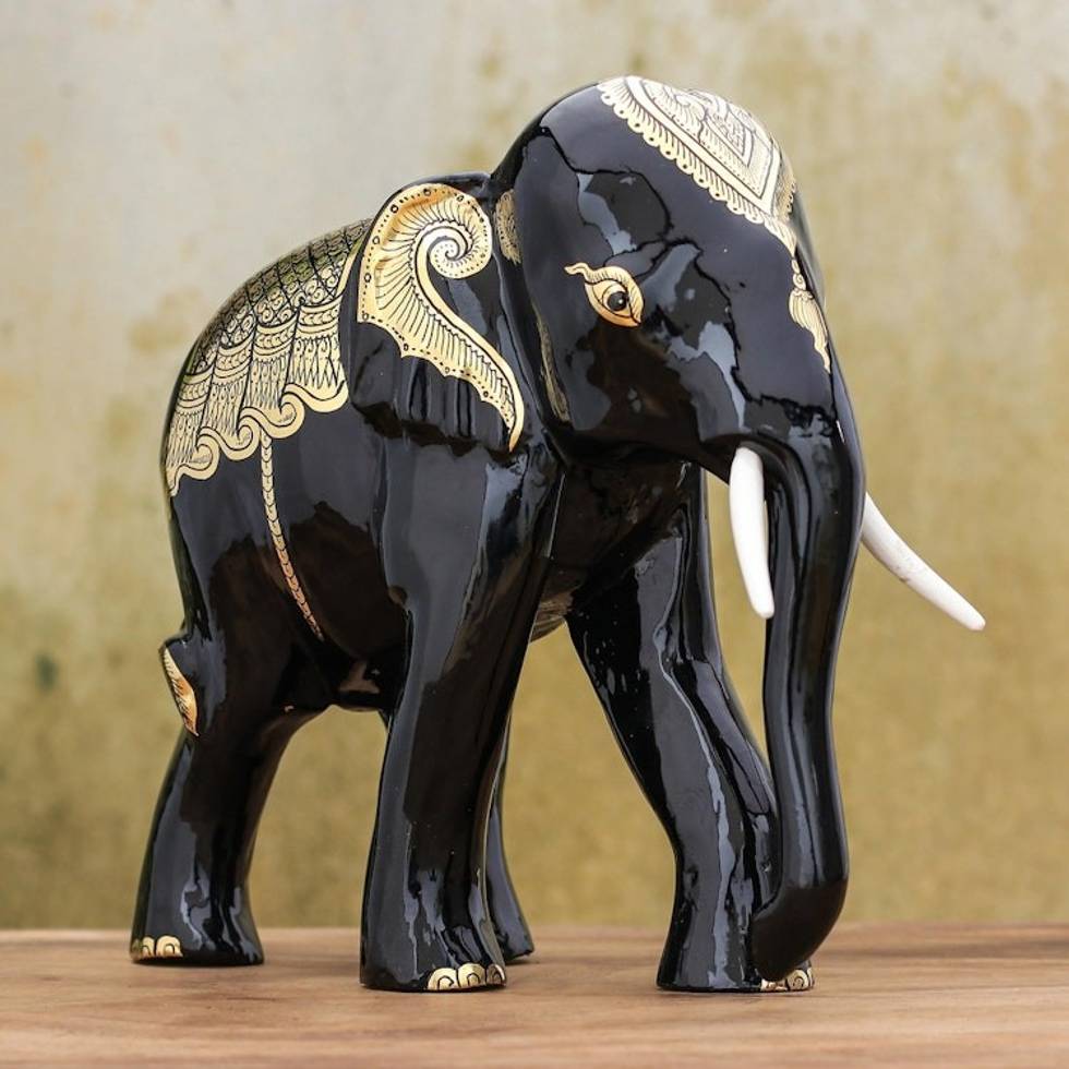 Hand-Painted Lacquerware Elephant Sculpture 'Elephant Treasure' Item ID: 2671800024