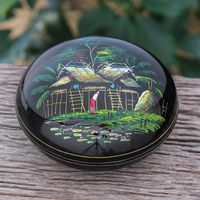 Hand-Painted Lacquerware Wood Box 'Village Life' Item ID: 2671800347