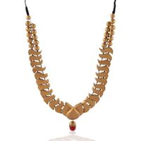 "Terracotta jewelry is crafted with clay which is procured from the river bed. After the piece is ready, it is baked in the oven and then hand-painted with vibrant colors and finally varnished with toxic-free lacquer.