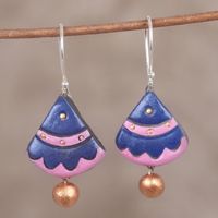 Hand-Painted Majestic Fan Ceramic Pair of Dangle Earrings 'Majestic Fan' Item ID: 2671790505