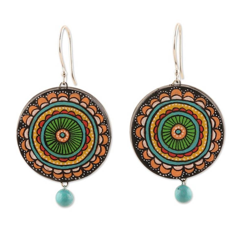 Hand-Painted Mandala-Themed Ceramic Dangle Earrings 'Jungle Mandala' Item ID: 2671625657