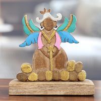 Hand-Painted Mango Wood Angel Sculpture with Easter Eggs 'Tender Heaven' Item ID: 2671786890