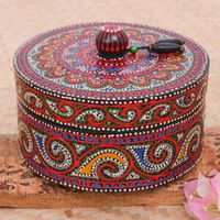 Hand-Painted Mango Wood Decorative Box with Black Beads 'Black Tides' Item ID: 2671797824