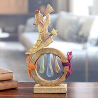 Hand-Painted Mango Wood Sculpture of Christmas Angel 'Divine Wish' Item ID: 2671786504