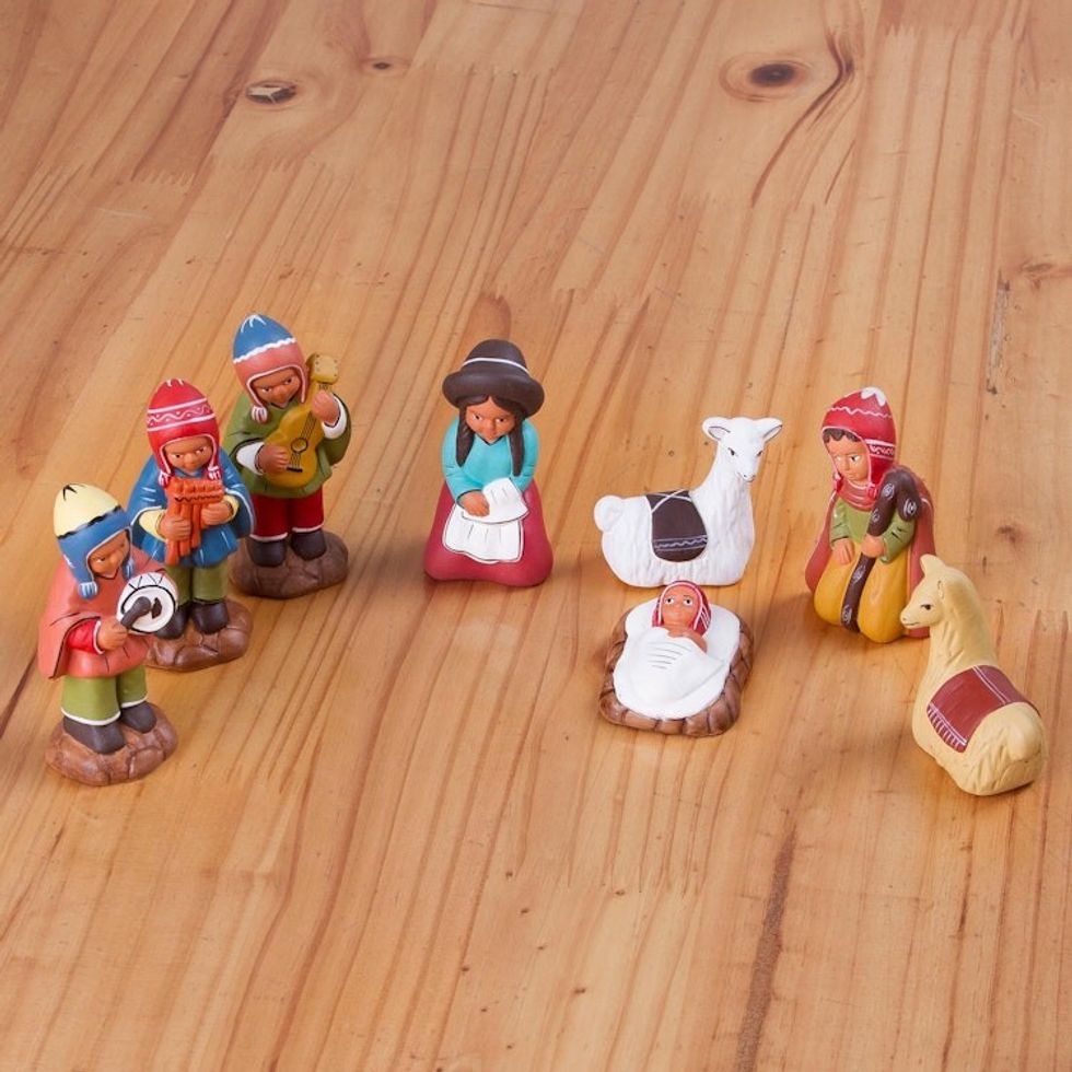 This nativity set is cute and colorful, with just the right level of detail. The clothing and the llamas (or alpacas?) contextualize the nativity of Christ for an Andean setting. But my favorite feature of this set is that the Christ child's visitors are musicians.