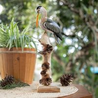 Hand-Painted Nature-Themed Wood Sculpture of a Crane 'Crane Scene' Item ID: 2671765734