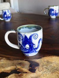 Hand-painted octopus mug 2 - porcelain and cobalt Item ID: 2670378252