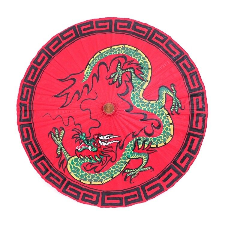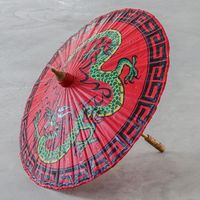 Hand-Painted Paper and Bamboo Dragon-Motif Parasol 'Lucky Dragon' Item ID: 2671799998
