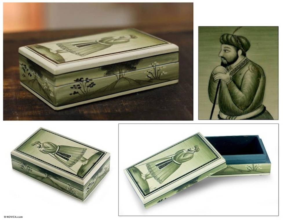 Hand Painted Papier Mache Decorative Box from India 'Mughal Emperor' Item ID: 2671794534