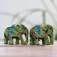 Hand-Painted Papier Mache Elephant Figurines Pair 'Festive Green' Item ID: 2671789970