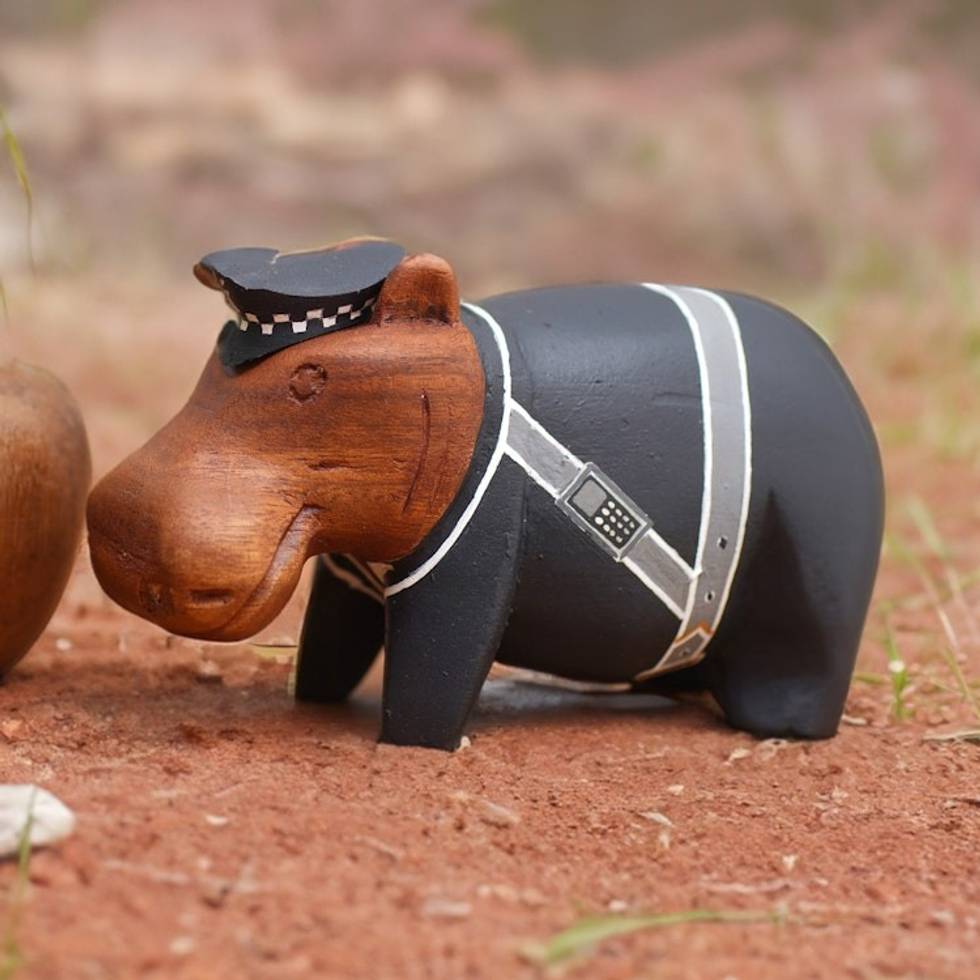 Hand-Painted Policeman Hippo Suar Wood Figurine 'Hippo Police' Item ID: 2671764549