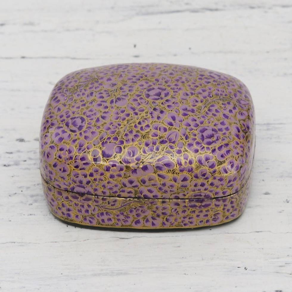 Hand-Painted Purple and Metallic Gold Floral Decorative Box 'Lavender Mist' Item ID: 2671790115