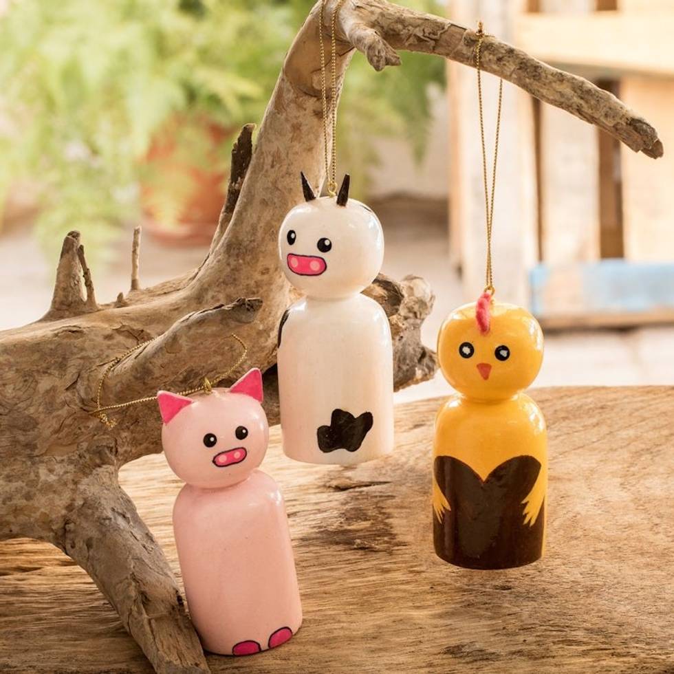 Hand-painted Reclaimed Wooden Ornaments Set of 3 'Farm Friends' Item ID: 2671771578