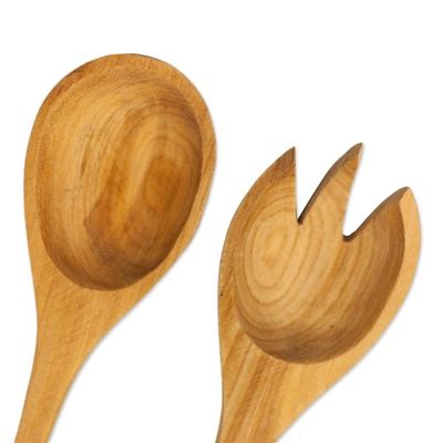 These serving utensils are simply lovely- the rich brown of the wood is perfectly capped by the pop of color and the cute vegetable motifs. They have a good grip and work well for serving salads. It's almost a shame to use them- they make me smile every time I see them.