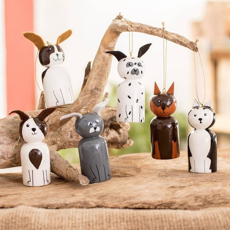 Hand-painted Reclaimed Wooden Ornaments Set of 6 'Loyal Friends' Item ID: 2669934119