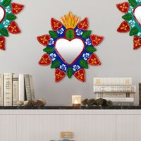 Hand-Painted Recycled Metal Wall Mirror Floral Heart Motifs 'Soul of the Andes' Item ID: 2671697945