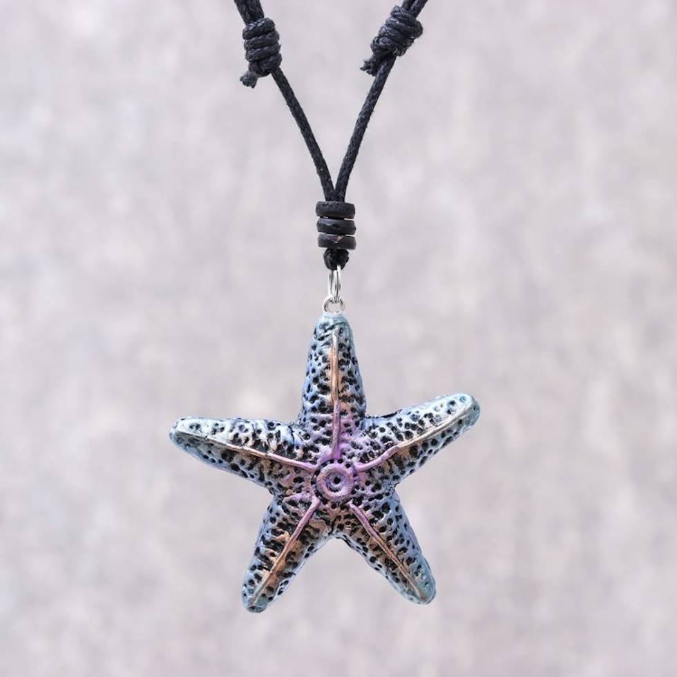 Hand-Painted Recycled Paper Starfish Necklace from Thailand 'Pink Starfish' Item ID: 2671798823