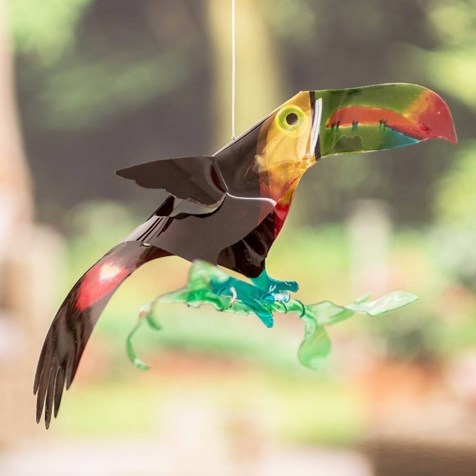 Hand-Painted Recycled Plastic Mobile of a Colorful Toucan 'Paradise Fauna' Item ID: 2671769894