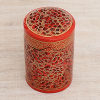 Hand-Painted Red and Gold Floral Wood Toothpick Holder 'Red Floral Beauty' Item ID: 2669924176