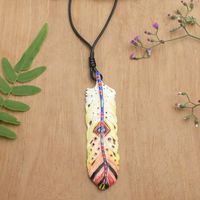 Hand-Painted Red and Yellow Feather Pendant Necklace 'Courageous Freedom' Item ID: 2676662523